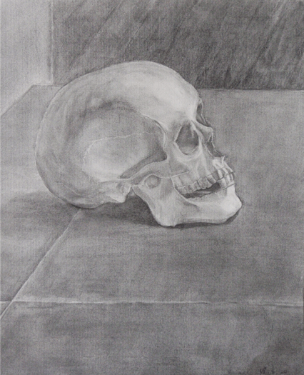 『頭蓋骨石膏』(木炭画 by mamiko)