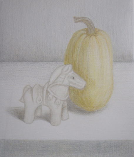 「馬と瓜」 (色鉛筆画 by masako)