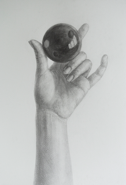 「手とガラス球」 鉛筆 by chikako M 2019年 4月