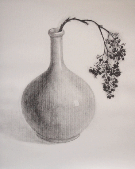 青白磁の徳利の立体感を出すのにがんばっていたようです。南天がリズム良く描かれています。