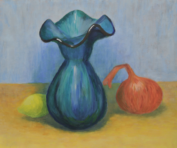 「青い花瓶のある静物」 水性アルキド by Itsuko H 2014年12月