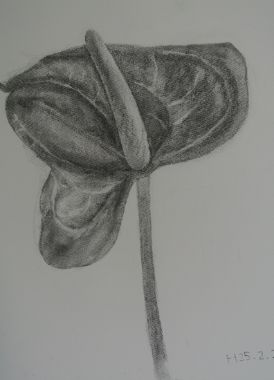 「アンスリウム」 木炭 by kazue I 2013年2月