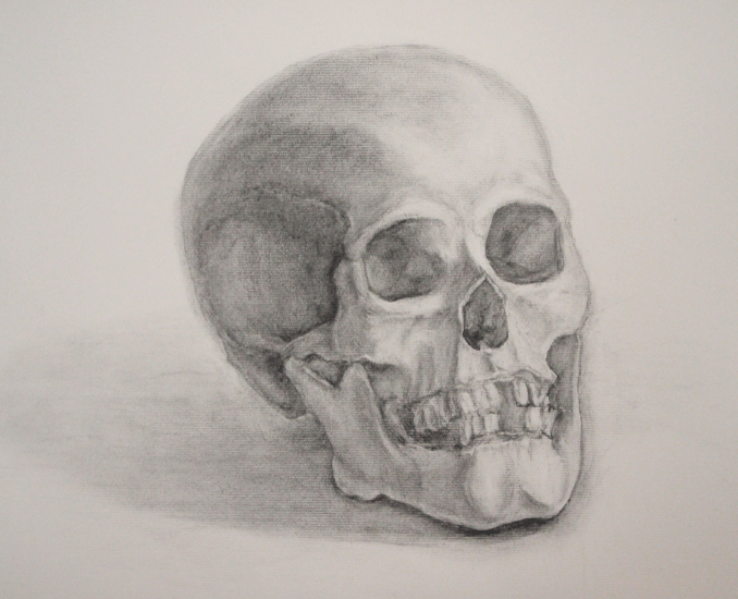 小さな起伏までデリケートな観察で描き上げています。大きな面(頬骨から後頭部にかけての面)の角度が次の課題です。