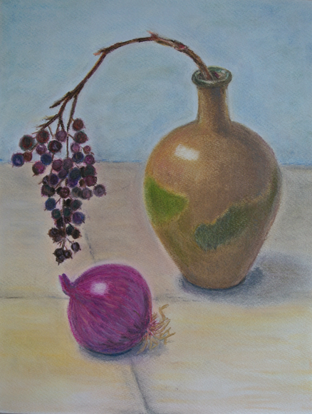 「レットオニオンのある静物」 色鉛筆&パステル by kazuyo N 2013年2月