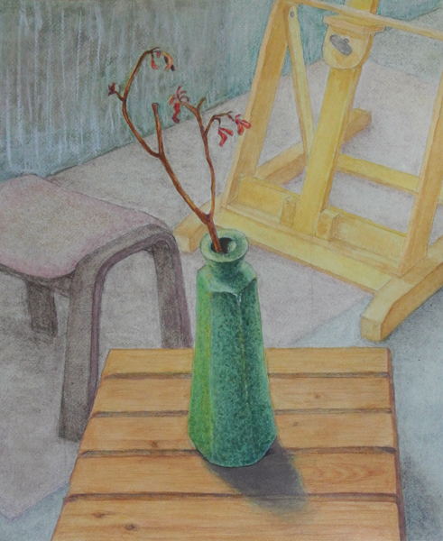 「緑の六角瓶」パステル&色鉛筆 by kazuyo N