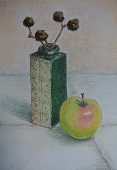 「リンゴと織部」 色鉛筆&パステル by kazuyo N 2013年2月