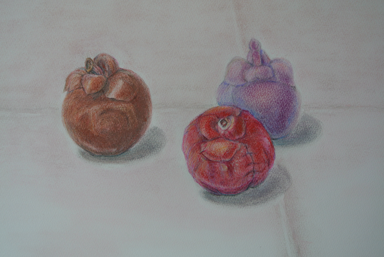 「3つのマンゴスチン」 色鉛筆&パステル by kazuyo N 2013年3月