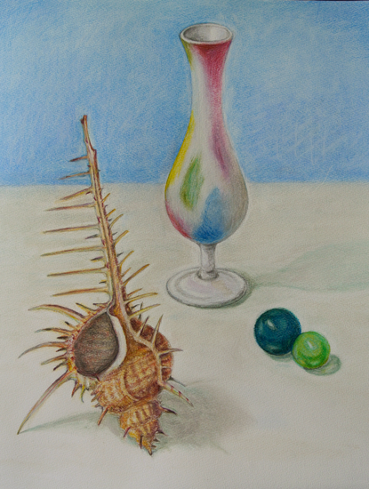 「貝と花瓶とビー玉と」 パステル&色鉛筆 by kazuyo N 2013年10月