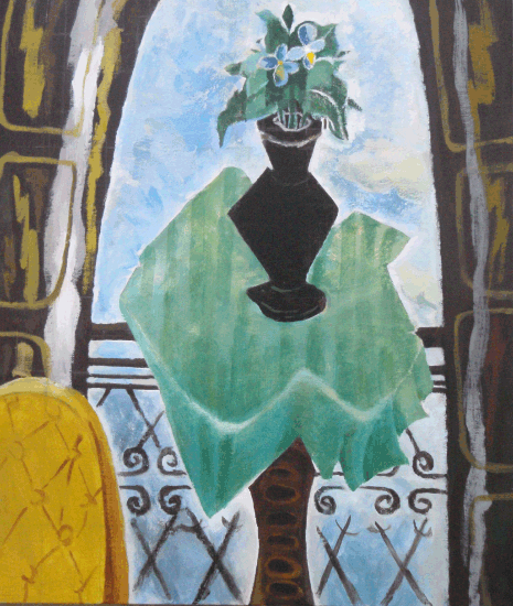 オリジナルは、窓の外の空間が複雑に表現されているところを、シンプルに解釈し、空だけを描いています。
