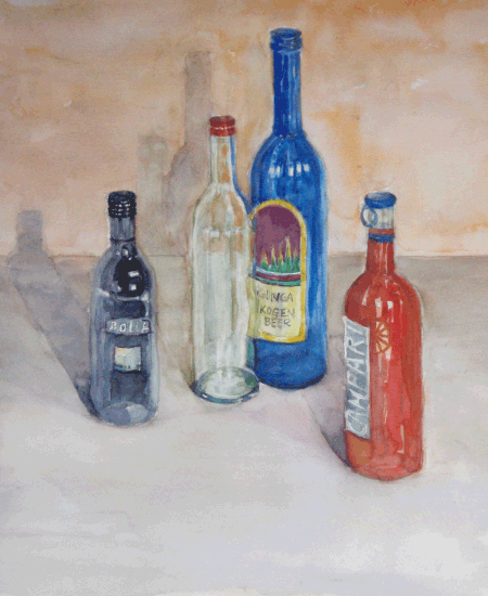 赤と青の響きあいが少しきついように思います。色と影の研究をしていくともっと良い絵になるでしょう。