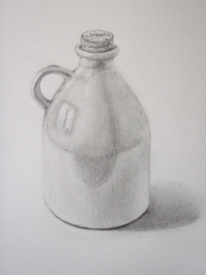 「ミルク瓶」 鉛筆画 by mieko K 2012年4月