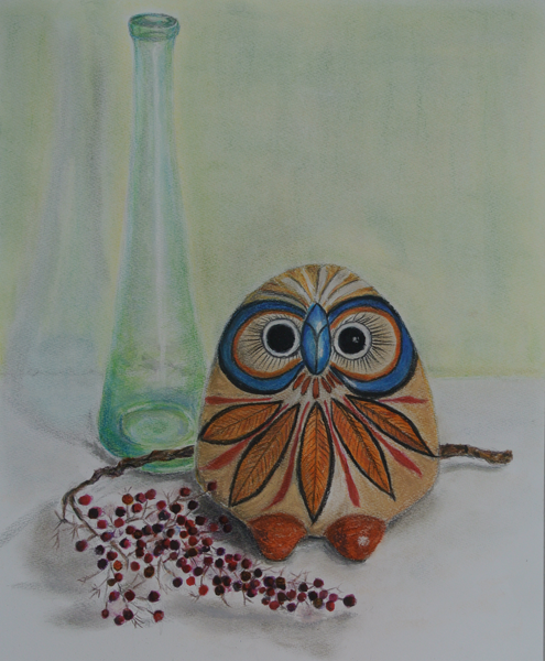 「ケン玉のある静物」 パステル&色鉛筆 by misao I 2014年8月
