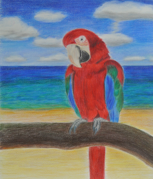 「オウムと海」 色鉛筆 by NAKAYAMA (2017年7月)