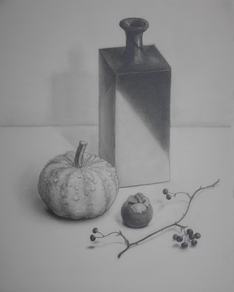 「角瓶のある静物」 鉛筆 by naomi Y (2015年 6月)