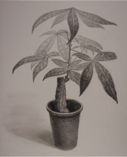 「パキラ」 鉛筆画 by rieko (2011年10月)