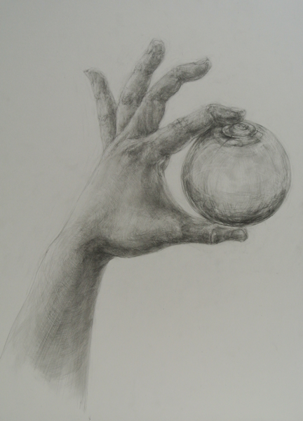 「手とウキ」 鉛筆 by risa Ik (2017年11月)
