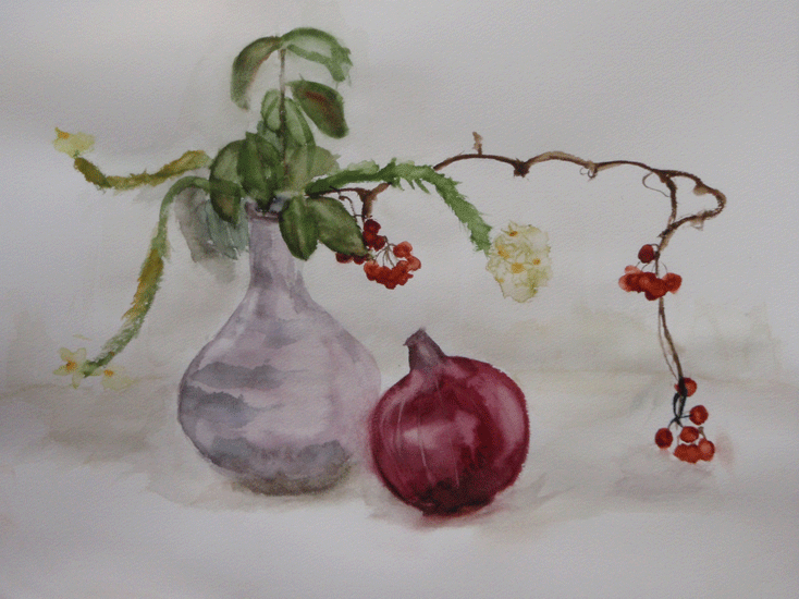 『レッドオニオンとサルトリイバラ』 透明水彩 by sachiko