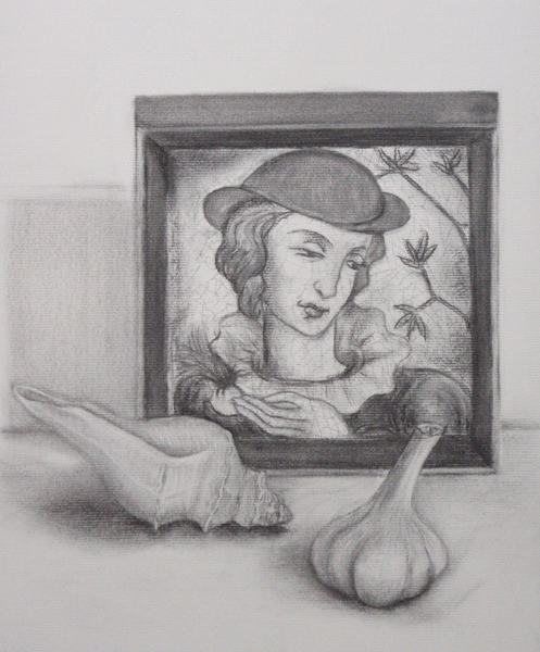 「陶板画のある静物」(木炭画 by saki)