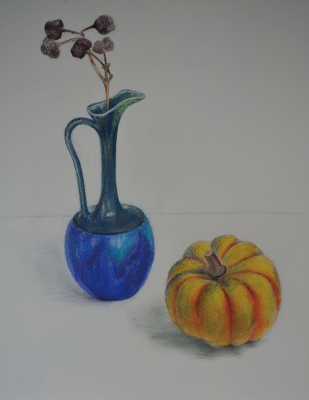 「南瓜と青い花瓶」 色鉛筆画 by sayaka K 2012年5月