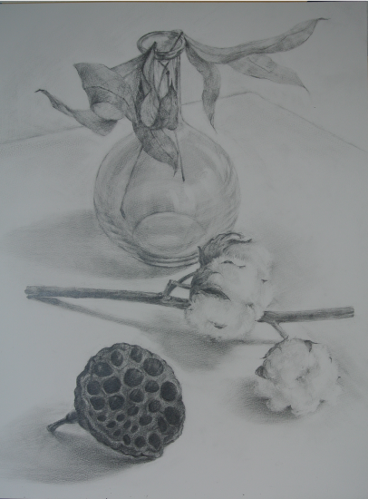 「綿花のある静物」 鉛筆画 by takako N (2012年7月)