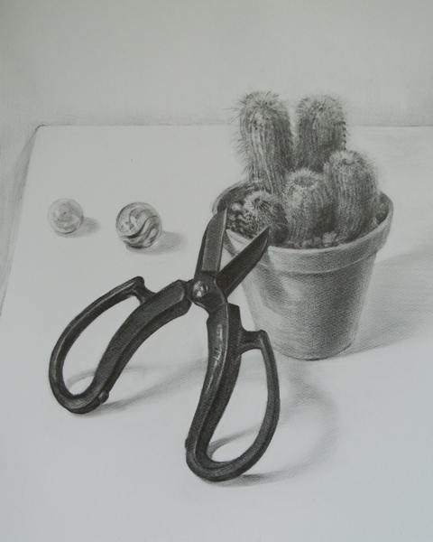 「鋏のある静物」 鉛筆 by takako N (2014年 9月)