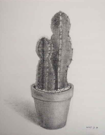 『サボテン』(木炭画 by tomoko)