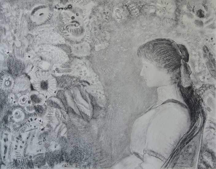 「ルドン/ヴィオレット・エーマンの肖像/模写」 木炭 by tomoko A (2013年9月)
