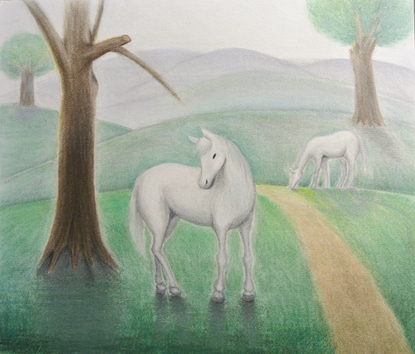 「朝日の白馬」 パステル by yoko O (2016年 11月)