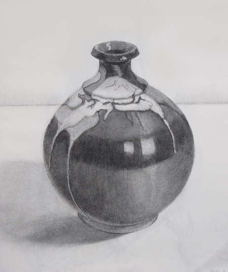 白い釉薬の厚みまで表現された瓶上半分は、特に見ごたえがあります。