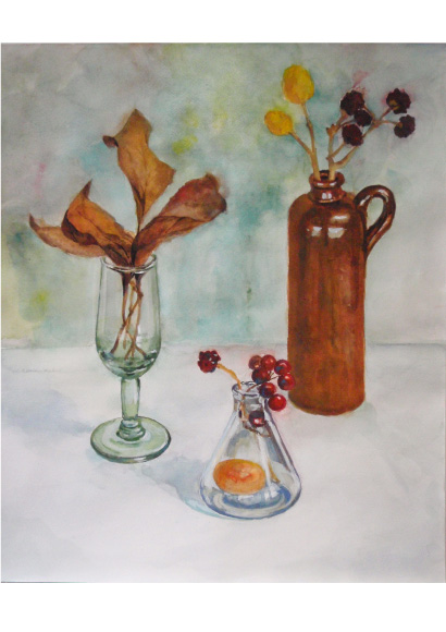 「古いインク瓶のある静物」 ガッシュ by yukari (2011年10月)