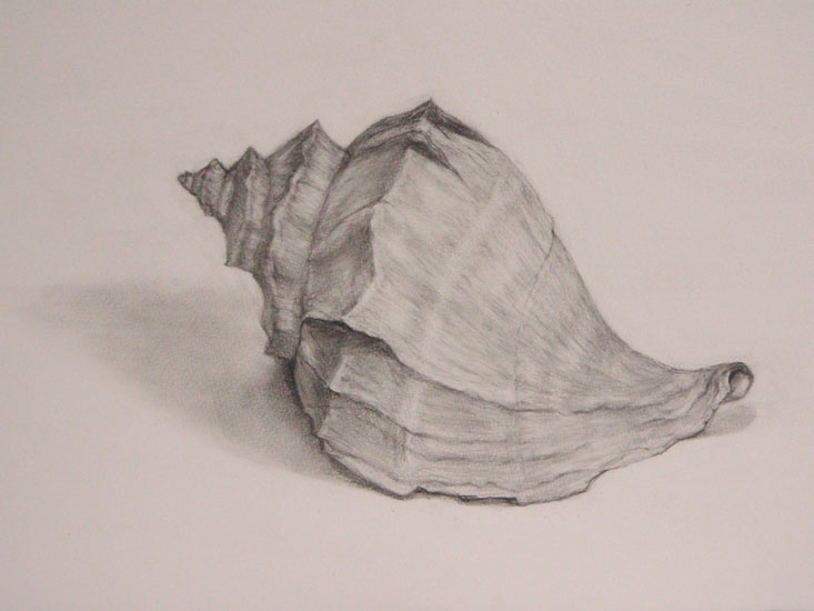 陽と陰を意識したことで、自然な貝の質感を表現することができました。右側上部分に、もう少しボリュームがほしいところです。