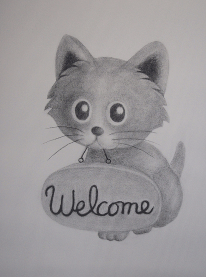 「Welcome cat」 木炭画 by yuko