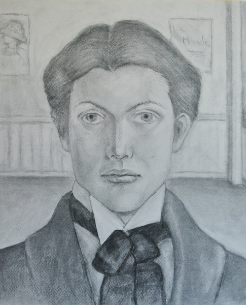 「デュフィ自画像を使った創作模写」 木炭 by yuko O 2014年11月