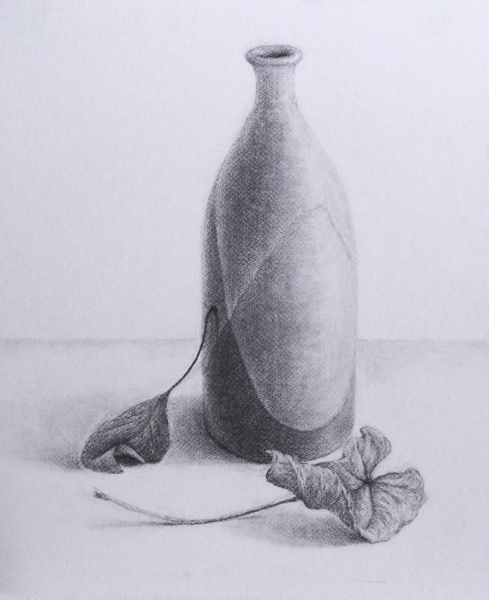 「虫明徳利のある静物」 木炭 by yumiko N (2022年 9月)